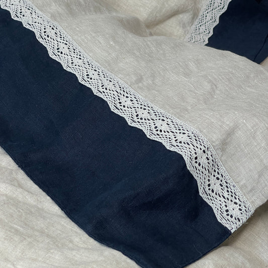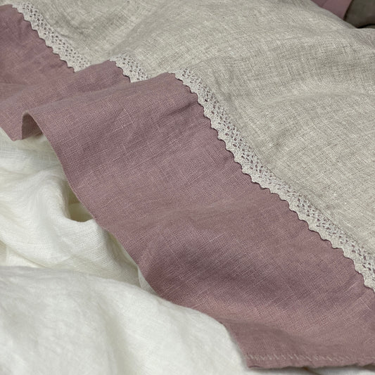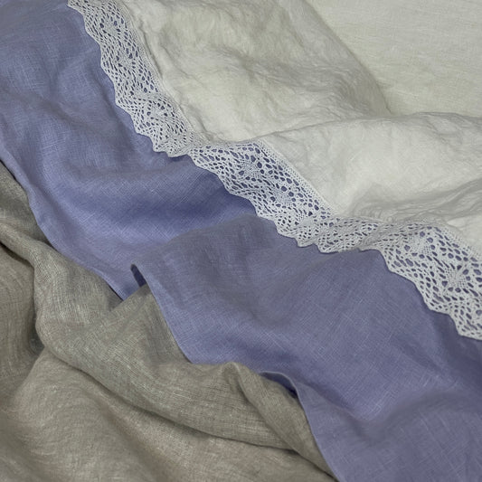 Silver Lilas Off-white Flax Flat Sheet with Lace