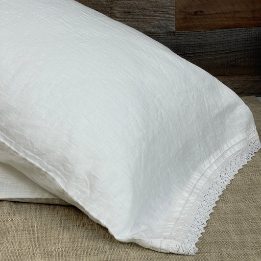 Nostalgia Off-white Flax Pillowcase with Lace