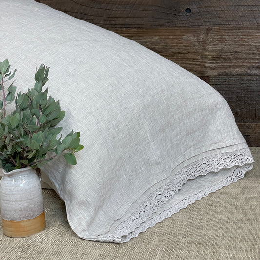 Nostalgia Greige Flax Pillowcase with Lace