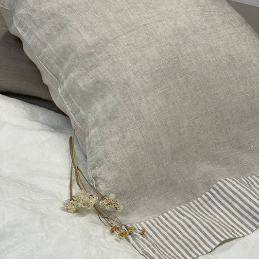 Stripe Accent Greige Flax Pillowcase
