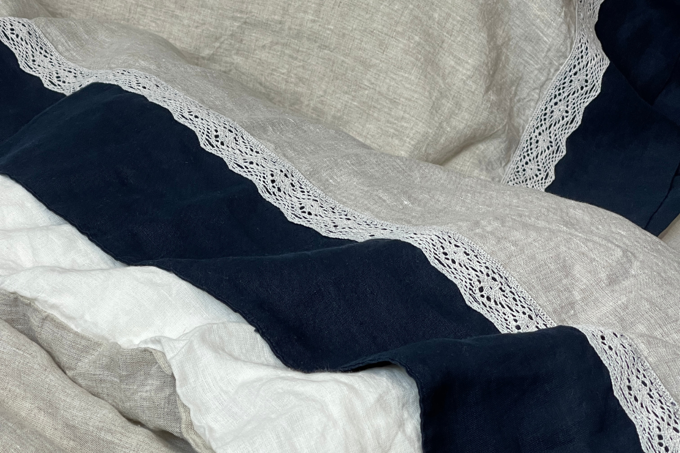 I use traditional French seam to make linens more durable and comfortable. As well as lace, which linen bedding has been decorated with for a very long time.