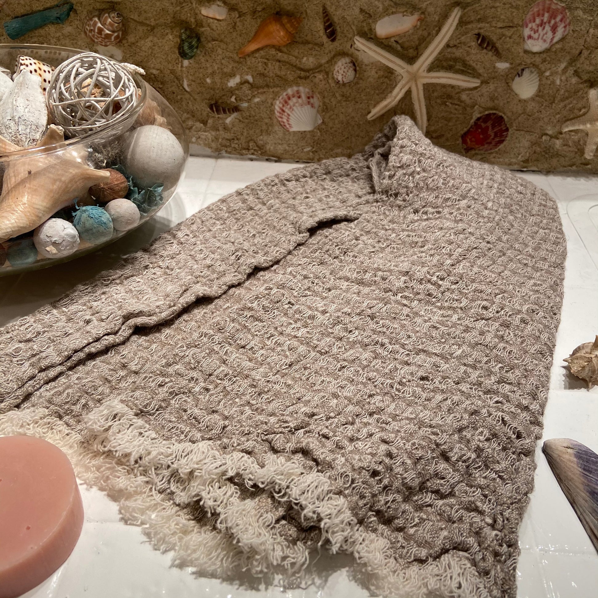Discover the ECO Flax Hair Towel – the eco-conscious answer to hair care. With passion and precision, I've handcrafted each towel from an exclusive, undyed 100% flax fabric, a genuine gem in the world of textiles. This is further refined with the “salty washing” method for added softness.