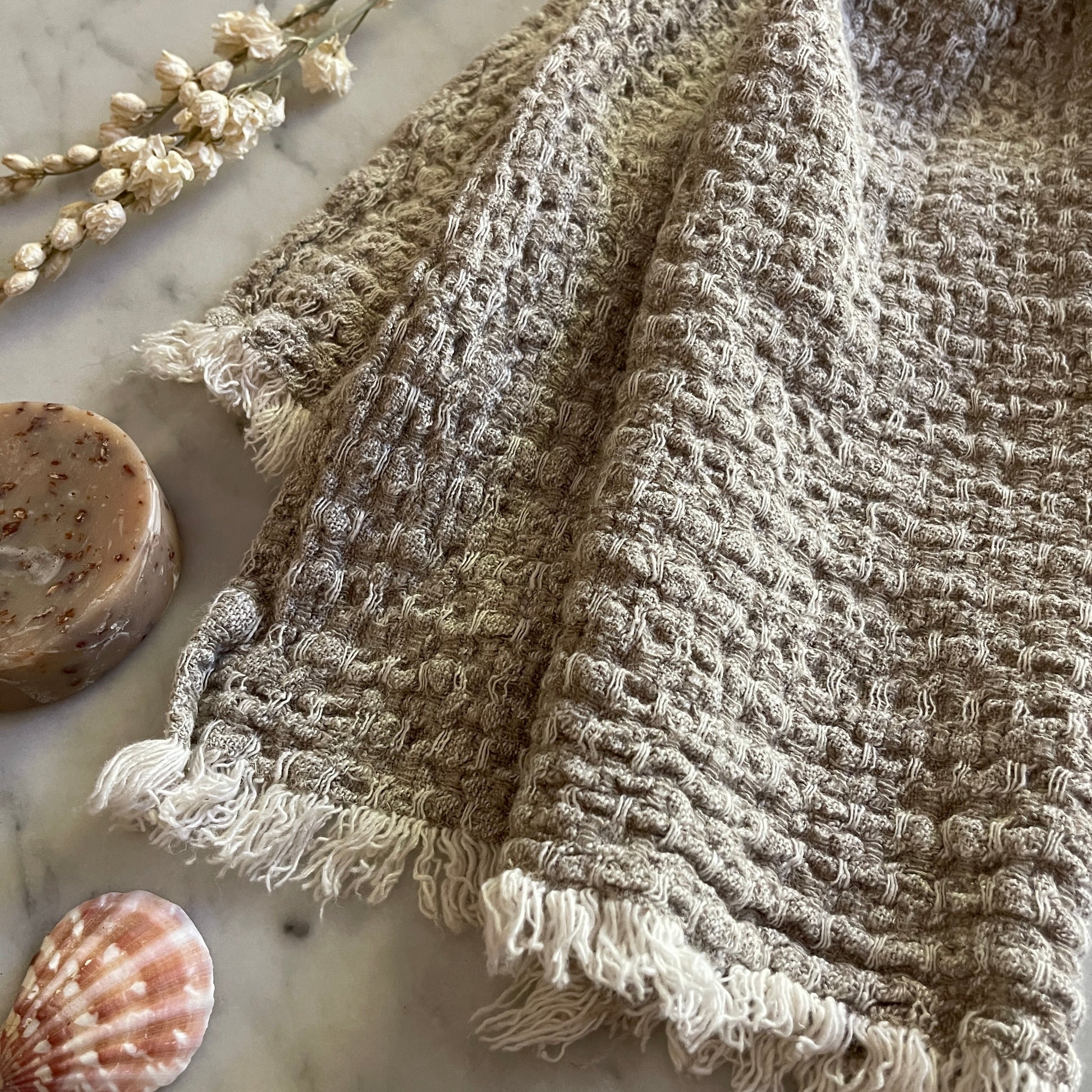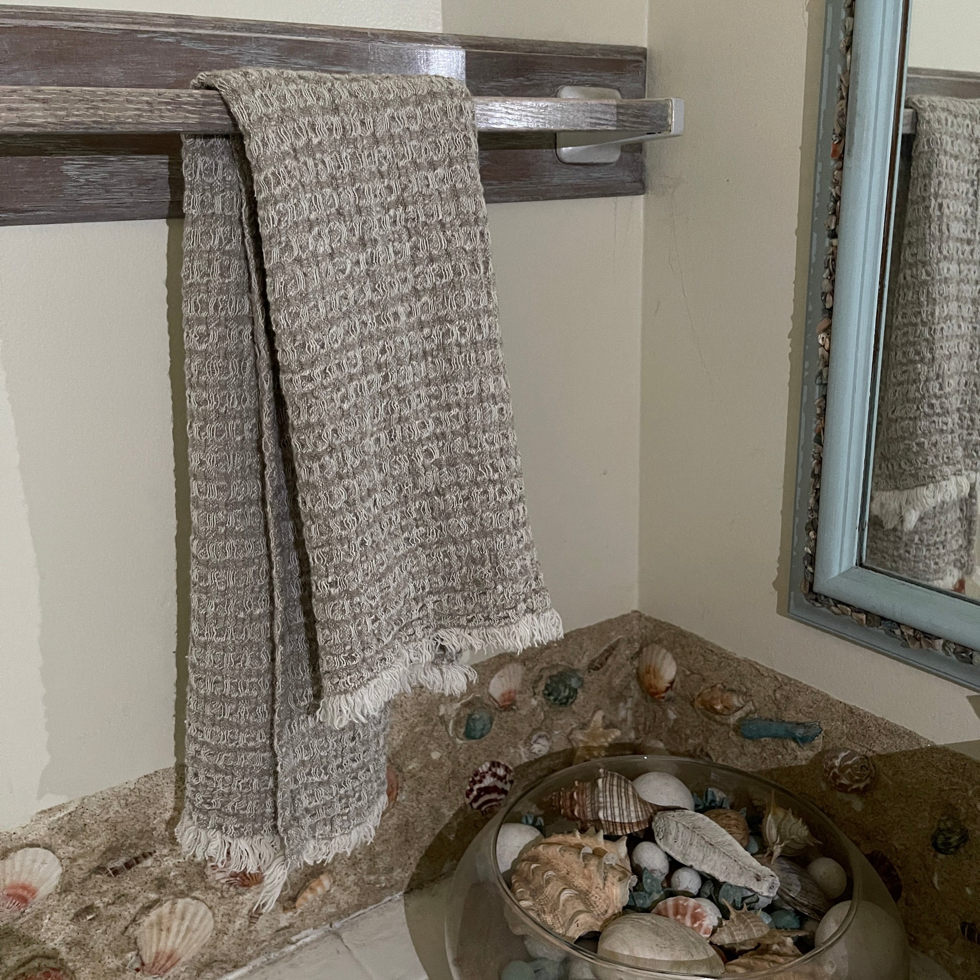 Unveiling the ECO Flax Hand Towel, an exquisite blend of artisan craftsmanship and eco-conscious design. Each towel is handcrafted by me from a rare undyed 100% flax fabric, defined by its unique texture.