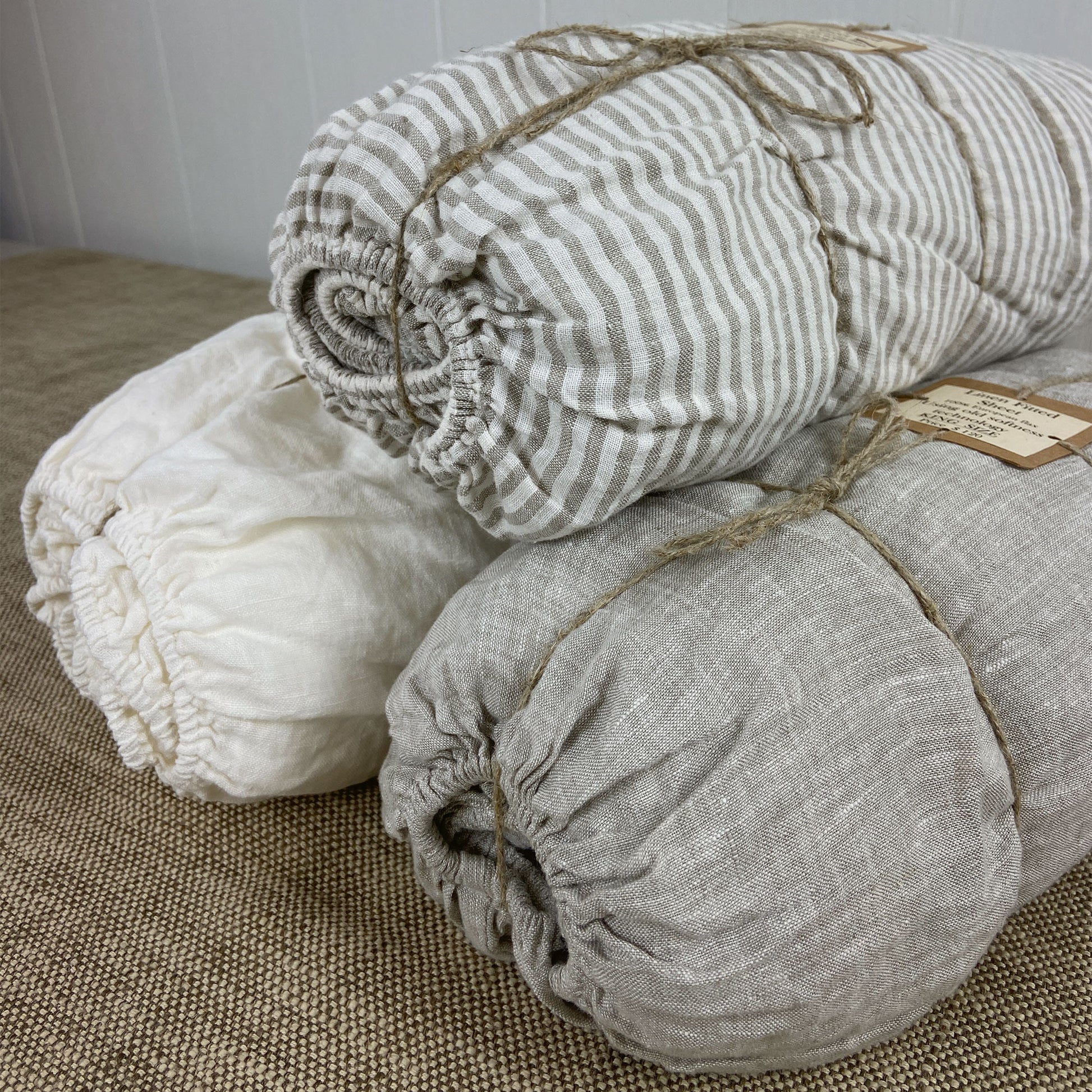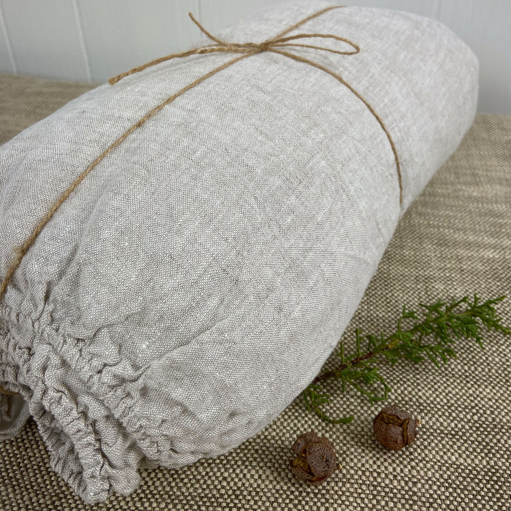 Elevate your sleep routine with my Greige Flax Fitted Sheet and wake up refreshed and revitalized every morning.