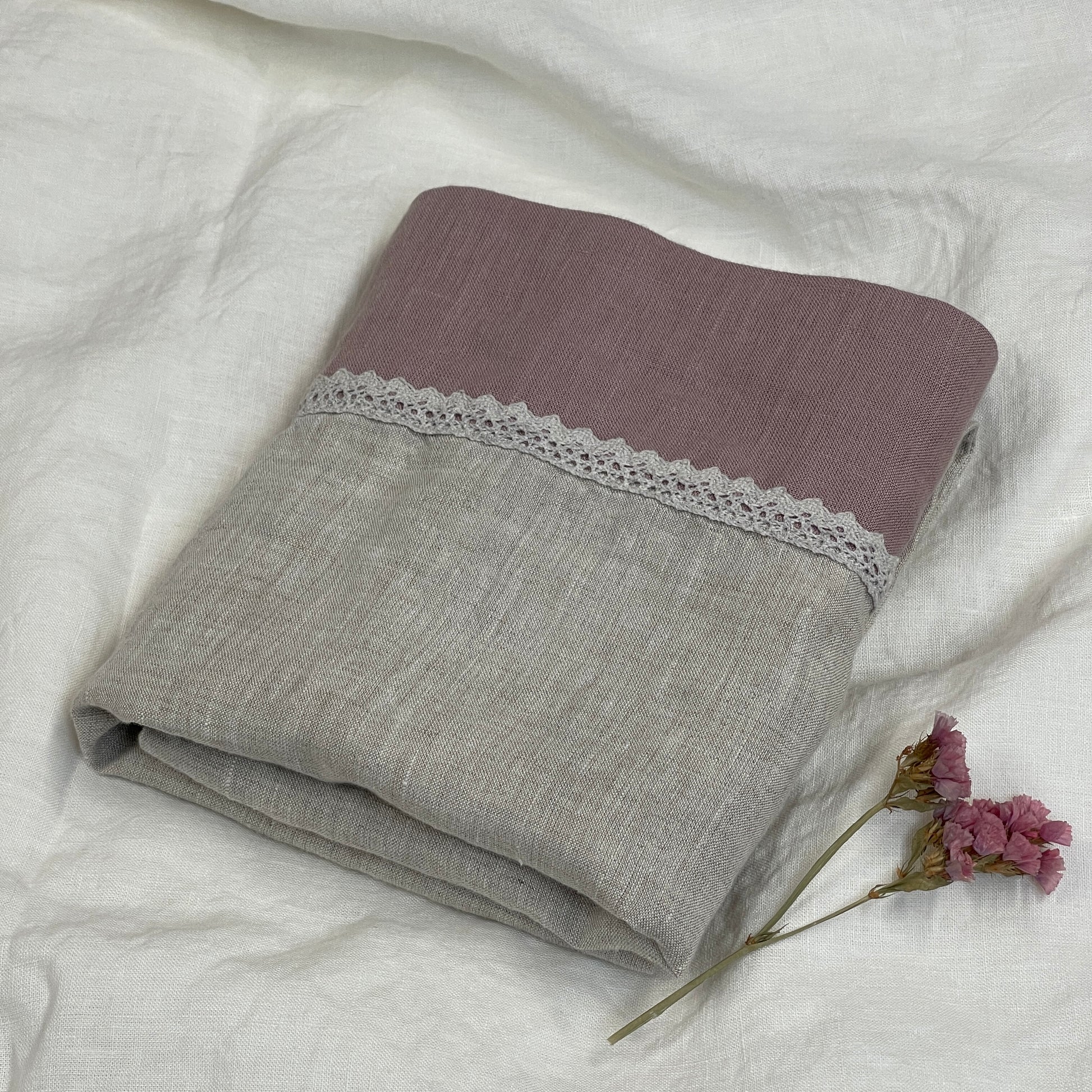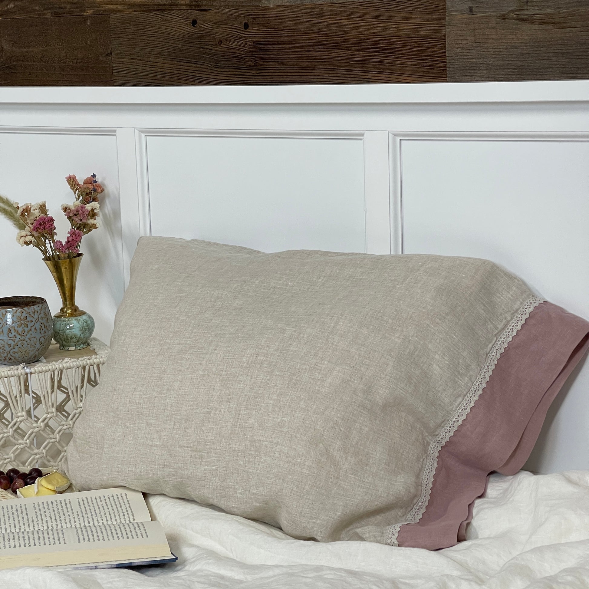 Greige Natural Mauve Flax Pillowcase with Lace