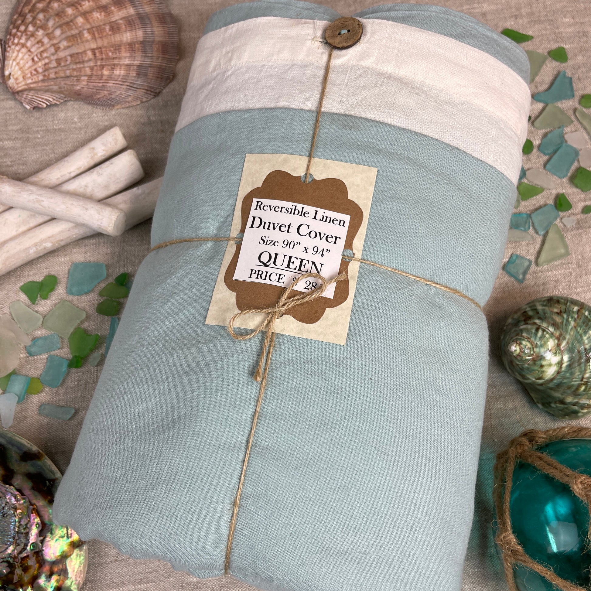 Sea Glass Off-White Reversible Flax Duvet Cover
