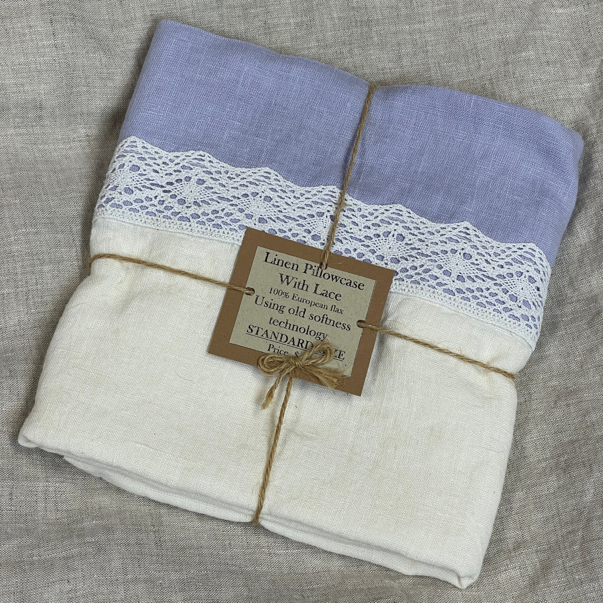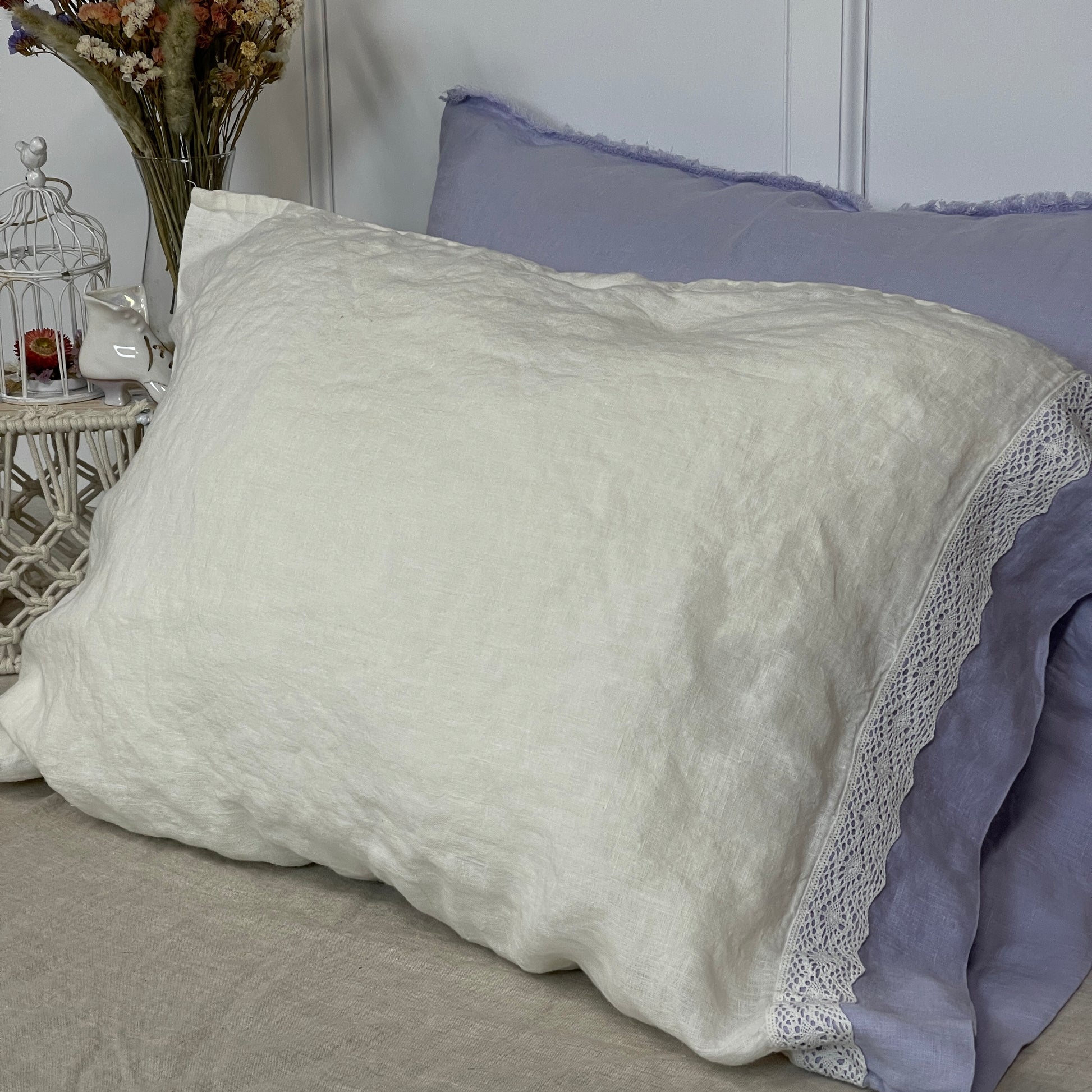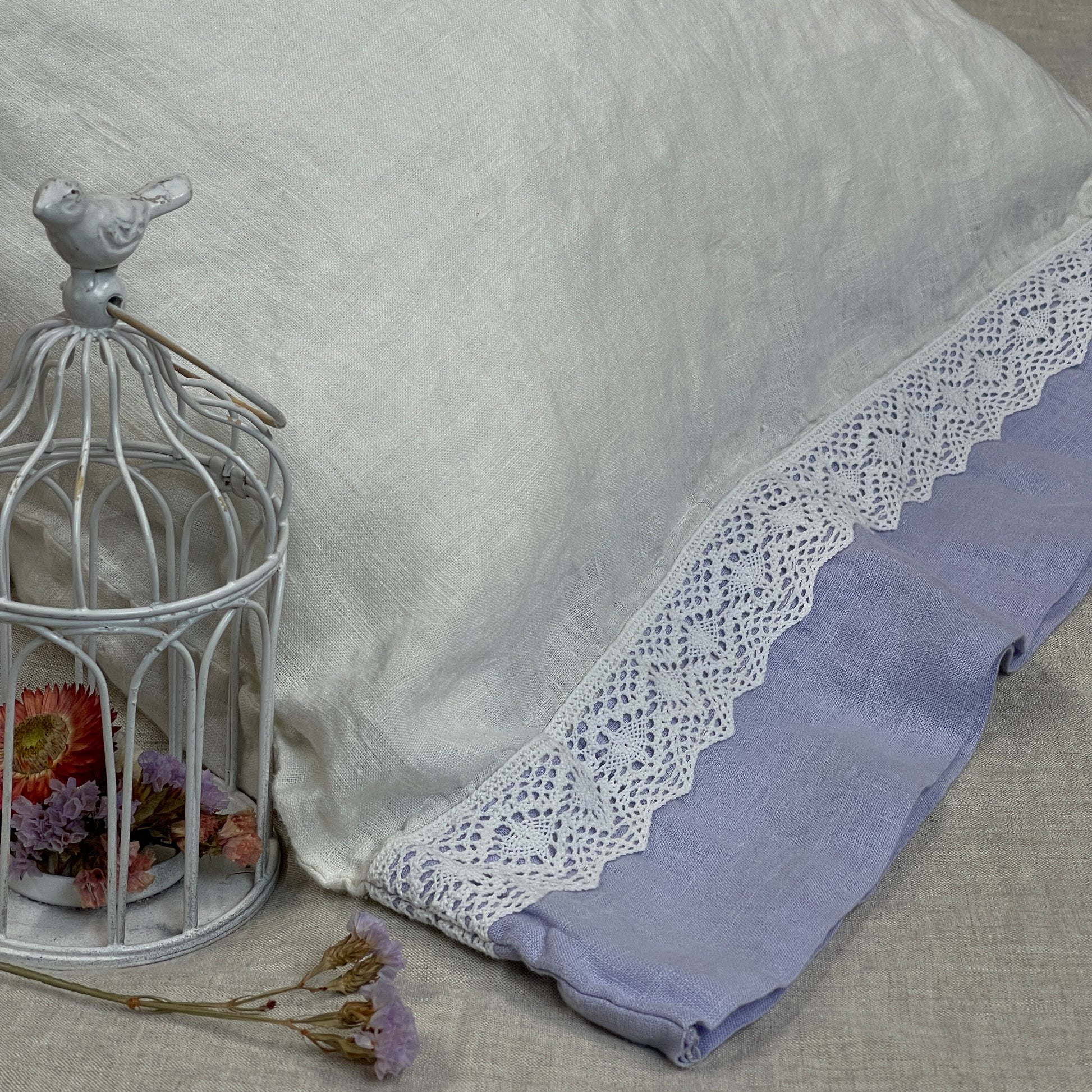Off-white Silver Lilac Flax Pillowcase with Lace